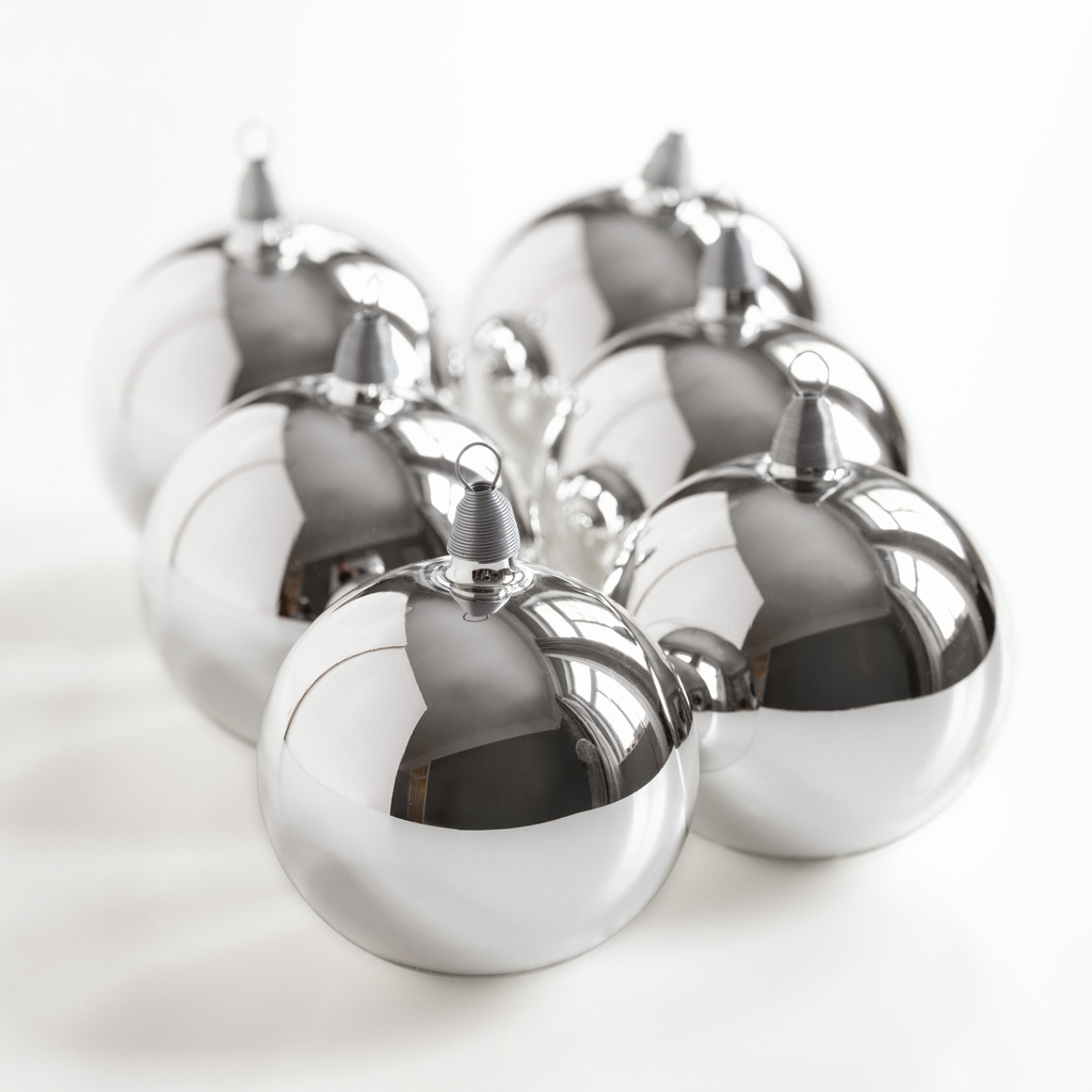 12 Lauschaer Weihnachtskugeln Silber 6 cm