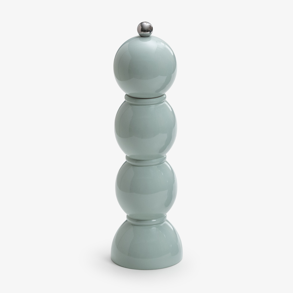In ihrer skulpturalen Form erinnern diese Mühlen von Addison Ross an balusterartige Säulen. Der Korpus besteht aus einer Reihe aufeinandergesetzter Kugeln, die durch eine hochglänzende Lackierung in zehn ausdrucksstarken Farben veredelt werden.