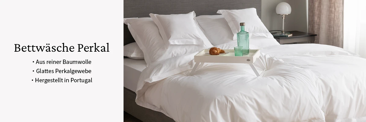 Diese Serie wird ausschließlich mit Kammgarn aus langstapeliger Baumwolle mit besonders langen Fasern hergestellt. Während bei gewöhnlichem Gewebe ca. 35 Fäden auf den Zentimeter kommen, sind es bei diesem Perkal 60 (Kette) bzw. 40 Fäden (Schuss). Die Bettwäsche ist mit einem umlaufenden 5-cm-Oxford-Stehsaum mit breitem Cordstich versehen.