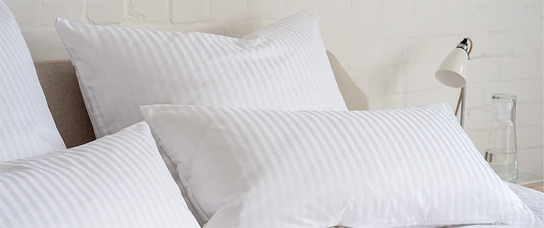 Für unser Bettzeug findet ein sehr hochwertiger, seidig glänzender Mako-Damast mit eingewebter Streifenstruktur (Streifenbreite 8 mm, Gewicht ca. 125 g/m²) Verwendung, der im eigenen Haus aus gekämmter und merzerisierter Baumwolle von hoher Feinheit gewebt und anschließend weiterverarbeitet wird. Verdeckte Knopfleisten mit Zwirnknöpfen. Reine Baumwolle.