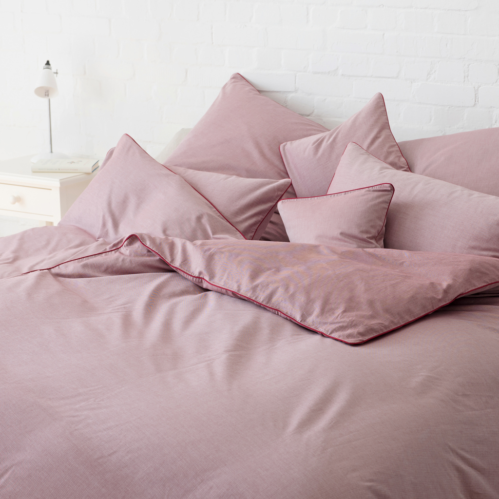 Bettbezug Herringbone Rot mit Paspel 135 x 200 cm