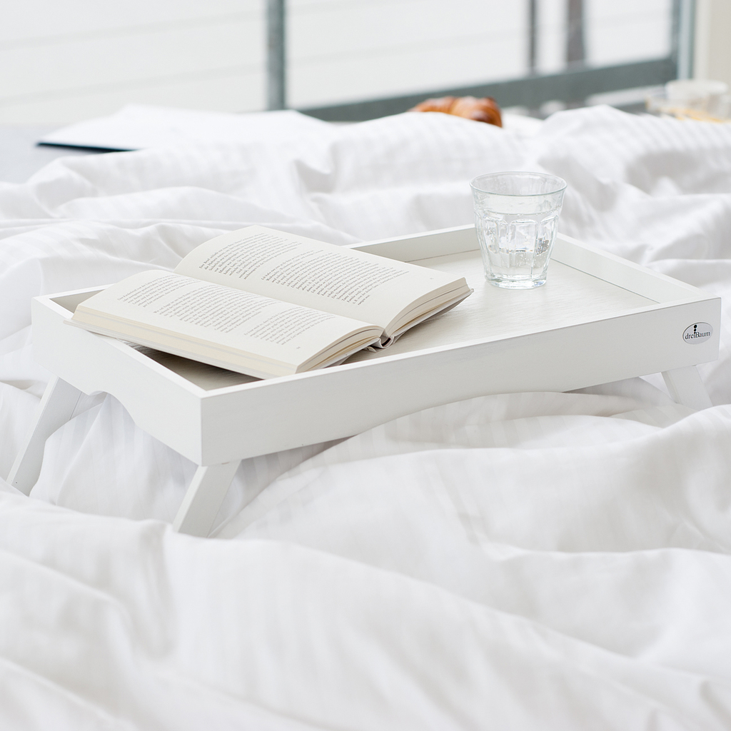 Klassisches Betttablett mit einklappbaren Beinen. Außerhalb des Betts benutzt man es wie ein ganz normales Tablett. Magnete sind dazu da, dass die Beine nicht ausklappen, wenn das Tablett getragen wird.