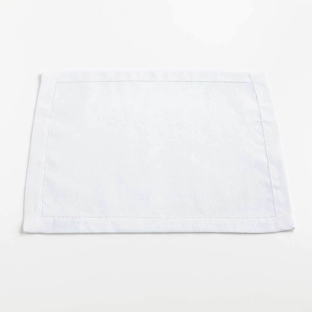 Tischsets aus einem Gewebe aus 60 % Leinen und 40 % Baumwolle, das bei Busatti in Anghiari im Herzen der Toskana auf Webstühlen entsteht, die noch aus der Zeit der ersten industriellen Revolution stammen. Alle Teile sind umlaufend mit einem von Hand eingezogenen Hohlsaum versehen.
