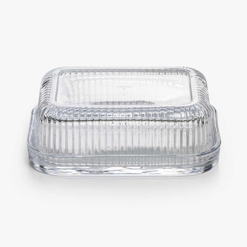 Das prägende Merkmal der Butterdose Belmont ist die geriffelte Haube. Diese liegt auf einem passgenauen Teller aus klarem Glas. Die Butterdose kann auch umgekehrt verwendet werden, dann liegt die Butter in einem tiefen Gefäß mit Deckel. Spülmaschinenfest.