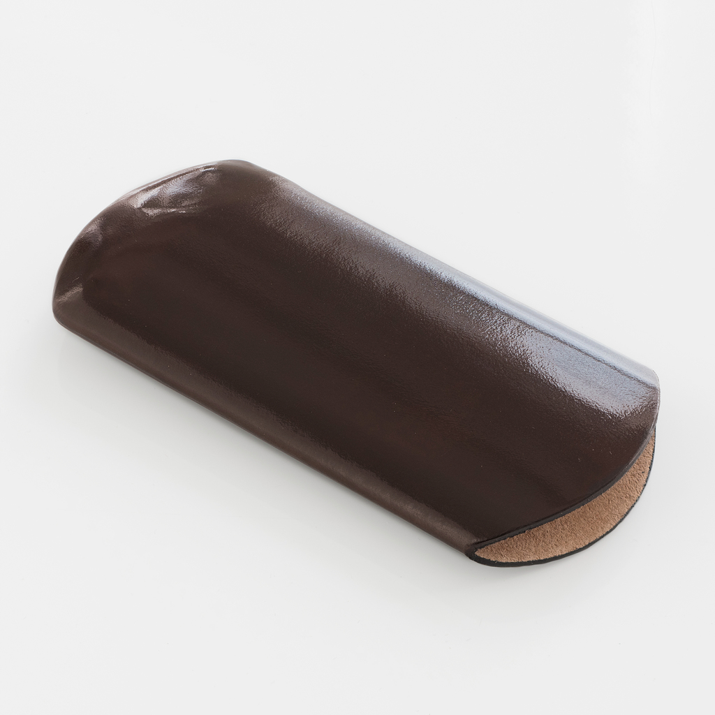 Einseitig offene Brillenetuis für schnellen und ständigen Zugriff auf Brille oder Lesebrille. Anders als Etuis zum Stecken oder Klappen können sie quasi einhändig bedient werden. Zusätzlich sind sie flacher, wobei das dicke, vorgeformte Leder dennoch gute Stabilität bietet. Hergestellt aus glattem Kalbsleder.