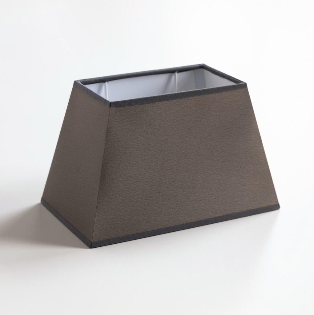 Trapezförmige, kastenartige Lampenschirme zur Verwendung auf unseren Lampenfüßen von Casadisagne. Die Schirme sind aus verlöteten Metallgestellen mit einem Bezug aus sehr durablem Stoff, innen mit einem Reflektor aus Kunststoff bezogen.