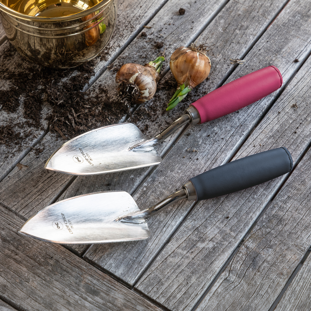 Diese Pflanzschaufel ist für alle präzisen Arbeiten in Beeten, Balkonkästen und Kübeln gestaltet. Ihre klassisch geformte, breite Kelle aus robustem Edelstahl dringt mühelos auch in festere Böden ein. Das entscheidende Merkmal ist jedoch der Griff: Er ist mit hochwertigem Leder ummantelt und wird mit einer markanten Naht von Hand geschlossen. Das Material sorgt nicht nur für einen besonders angenehmen und sicheren Halt bei der Gartenarbeit, sondern entwickelt mit der Zeit durch den Gebrauch eine individuelle, charaktervolle Patina.