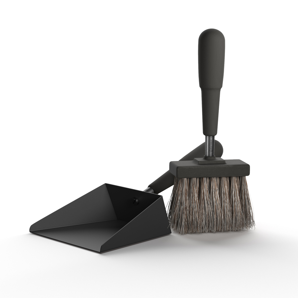 Dieses Set zum Entfernen überschüssiger Asche aus dem Kamin ist auch Teil unseres Kaminbestecks Emma. Das Kehrblech mit seinem hochwandigen Schaufelblatt aus pulverbeschichtetem Stahl kann viel Asche sicher aufnehmen. Die Aschenbürste ist mit einem Besatz aus Rosshaar und Mexiko-Fibre, einer Naturfaser aus der Agavepflanze versehen. Rosshaar eignet sich hervorragend zum Aufnehmen von Feinstaub, während die Mexiko-Fibre für Hitze- und Formbeständigkeit des Besatzes sorgt.