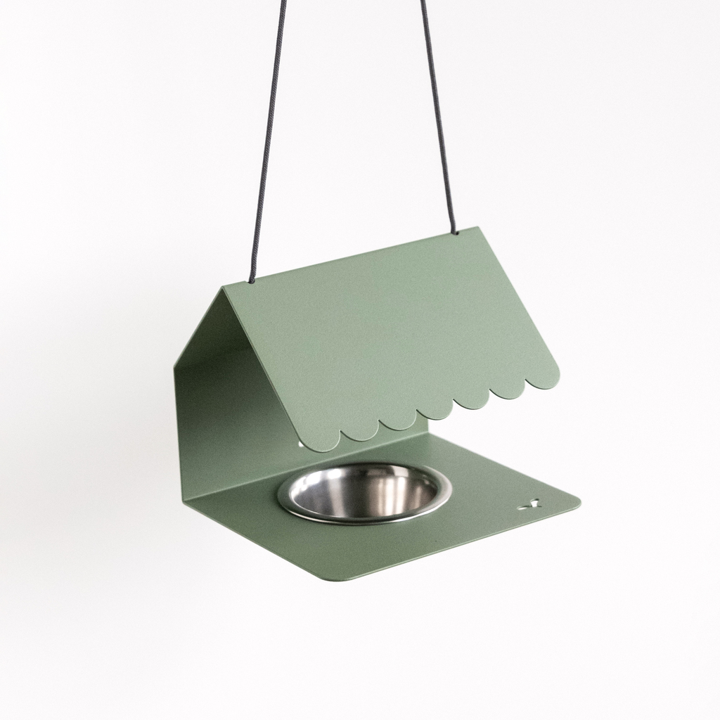 Puristisch gestaltetes Vogelhaus aus gekantetem Stahlblech, das sich unauffällig in seine Umgebung einfügt. Im Garten über einen Ast gehängt oder an die Hauswand geschraubt dient es kleinen Gartenvögeln im Winter als Futterstelle oder im Sommer als Tränke. Picoti wird nach einem Entwurf der Designerin Catherine Sophia bei Fermob, dem französischen Spezialisten für hochwertige Stahlmöbel im Außenbereich mit Sitz in Thoissy, gefertigt. Dort wird es mit allen Aussparungen mittels präzisem Laserschnitt aus Stahlblech geschnitten und zu seiner prägnanten Hausform gekantet. Eine mit UV-Schutz ausgerüstete, matt körnige Pulverbeschichtung sorgt für lange Farbbeständigkeit und rutschsicheren Halt für die Vögel.