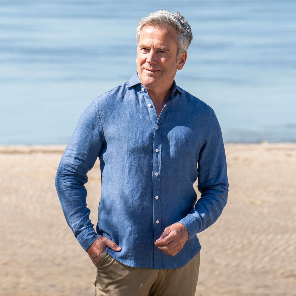 Sommerlich-legeres Hemd aus reinem Leinen mit klassischem Kent-Kragen, aufgesetzter Knopfleiste und Sportmanschetten. Aus kühlendem Leinengewebe mit dem typischen Edelknitter ist es das ideale Reisehemd, das man auch am Strand schnell zum Spielen oder Eisholen überziehen kann. Gefertigt wird es für die Marke Ferreira de Almeida in einer Textilmanufaktur im Norden Portugals – einer Region, die für eine lange Tradition hochwertiger Textilien in exzellenter Verarbeitungsqualität steht.