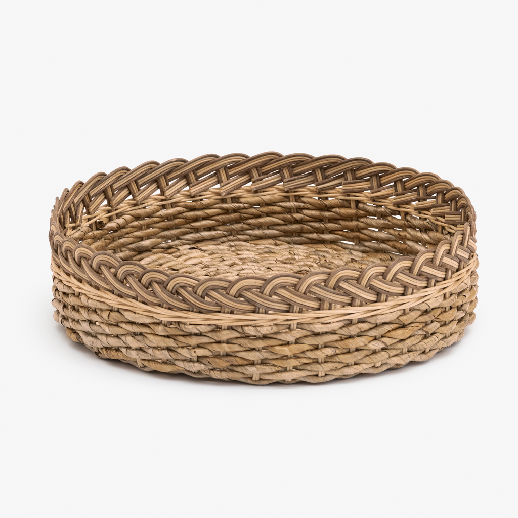 Das geräumige Flechttablett eignet sich für saisonale Deko, z. B. im Eingangsbereich oder auf dem Treppenabsatz – oder als attraktive Aufbewahrungsmöglichkeit für Zeitungen, Bücher etc. Das Tablett aus indonesischem Bananenblatt besitzt einen extra hohen Rand und ist kunstvoll von Hand geflochten.