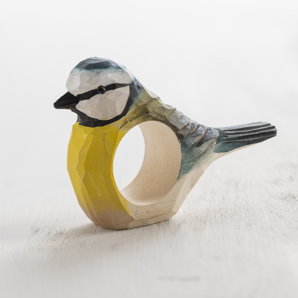 Handgeschnitzer Serviettenring Blaumeise