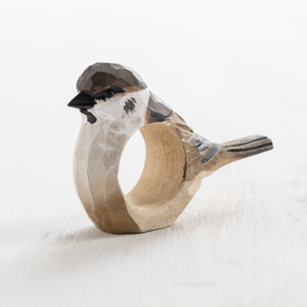 Handgeschnitzer Serviettenring Feldsperling