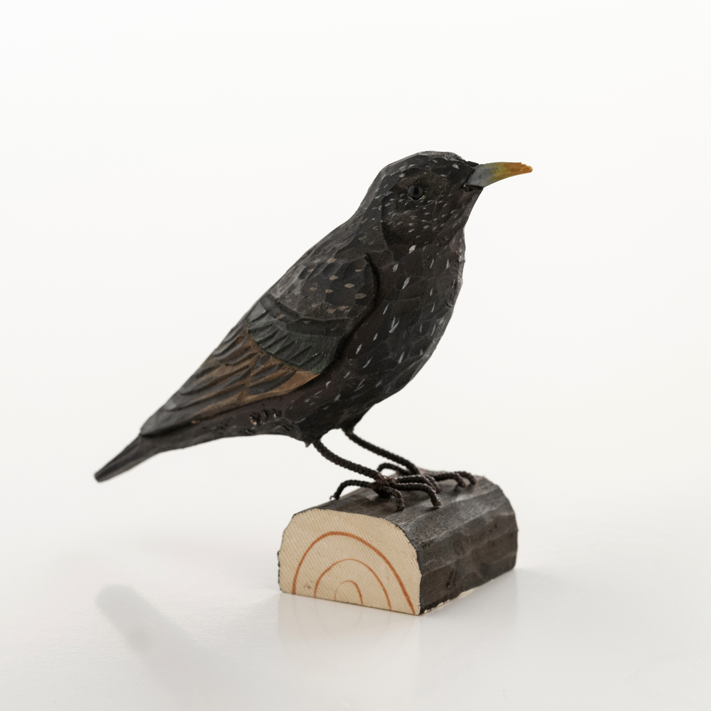 Dass die heimische Vogelwelt über einen schier unermesslichen Artenreichtum verfügt, weiß jeder, der gelegentliche Spaziergänge in der freien Natur unternimmt. Während man manchen Arten nahezu ständig begegnet, lassen sich andere eher selten sehen. Auf den ersten Blick unterscheiden kann man sie meist vor allem anhand ihres mehr oder weniger prächtig und farbenreich gestalteten Federkleids. Diese Serie ungefähr lebensgroß handgeschnitzter und handbemalter Vögel zeigt nur einen kleinen Ausschnitt aus der heimischen Vogelwelt, eignet sich aber hervorragend zum Kennenlernen artspezifischer Merkmale. Vogel und Aststück aus Lindenholz, Füße aus Draht. Jedem Vogel liegt eine Broschüre mit artspezifischen Informationen bei.