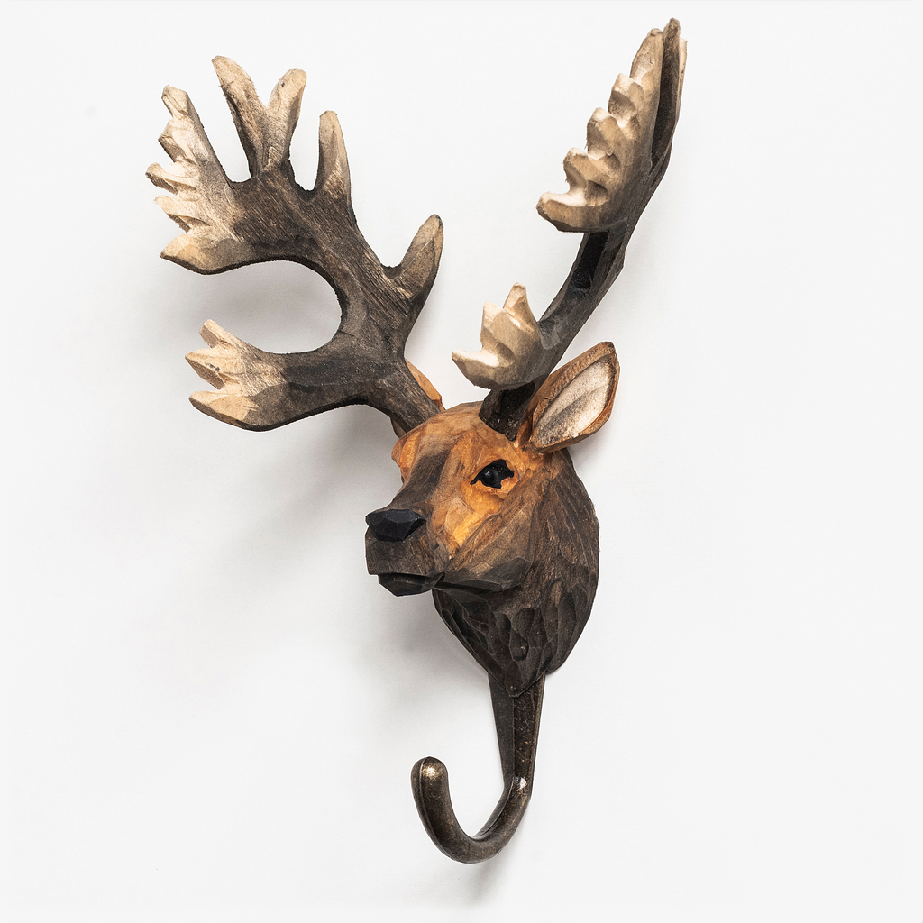 Diese Kleiderhaken in Form heimischer Wildtiere bringen tierische Abwechslung an die Wand – und vermitteln wie nebenbei, welche und vor allem wessen Jacke auf welchen Haken gehört. Die Tierköpfe sind von Hand aus Holz geschnitzt und dann mit wasserbasierter Acrylfarbe lackiert: Nuancenreich und fein abgestimmt, so dass ein erstaunlich naturalistischer Eindruck entsteht und sich keine zwei Füchse und keine zwei Hirsche gleichen. Der eigentliche Haken ist aus Metall und mit dem Tierkopf verschraubt. Zur Montage wird lediglich eine in die Wand versenkte Schraube benötigt: Die Haken werden einfach auf den herausstehenden Schraubenkopf aufgesetzt und arretiert.