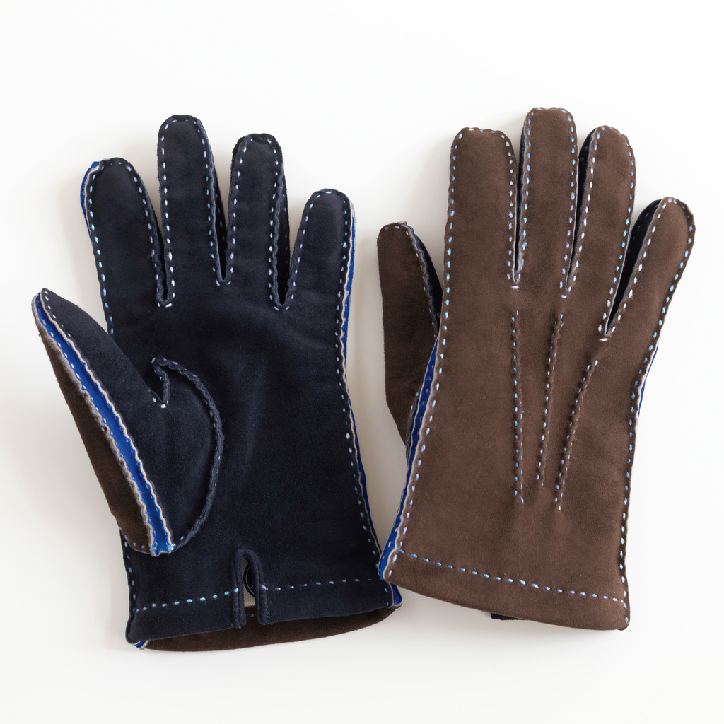 Herrenhandschuhe Ziegenleder Kontrast Blau/Braun Gr. 8,5