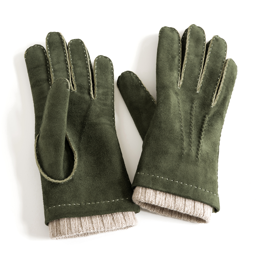 Herrenhandschuhe Ziegenleder Stulpe Grün/ Beige Gr. 9,5