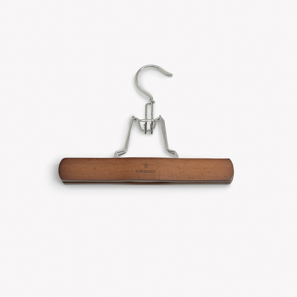 So müssen hochwertige Hosenbügel sein: gefertigt aus massivem Buchenholz, geschliffen, lackiert und mit stabilen Metallhaken versehen. Abgestimmt auf die mobile Garderobe Västergard. Stege mit Vliesauflage.