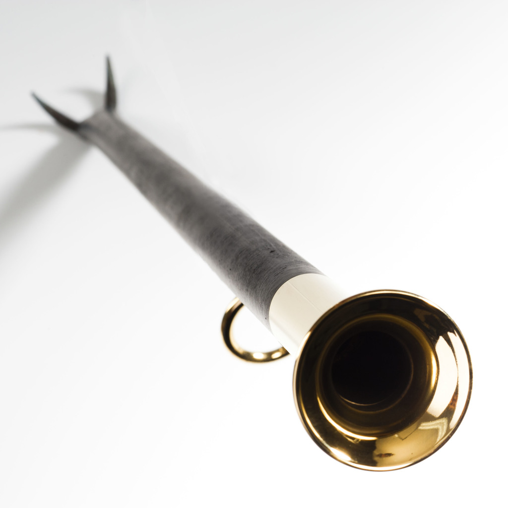 Alles, was man mit einem Feuer anstellen kann, geht mit diesem Gerät: Durch das Austrittsloch am Ende entsteht ein starker Luftstrom mit Sauerstoffzufuhr direkt an der Glut. Am eisernen Ende des Werkzeuges sitzt ein Schür-haken. Schwarzes Eisenrohr mit Mundstück und Aufhängring aus -unlackiertem -Messing bzw. Messing, das mit einer Auflage aus Neusilber versehen wurde. Aus einer kleinen niedersächsischen Metalldrückerei.