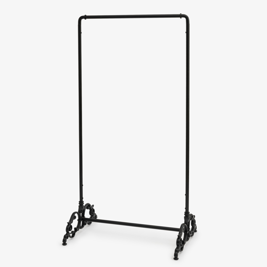 Beim Entwurf dieses dekorativen Kleiderständers haben wir uns von den schmiedeeisernen Fensterelementen unseres Hamburger Ladengeschäfts inspirieren lassen – ein Zitat der charakteristischen Ornamentik des Art déco. Gefertigt aus massivem, pulverbeschichtetem Eisen überzeugt der Kleiderständer durch sein stabiles Eigengewicht.