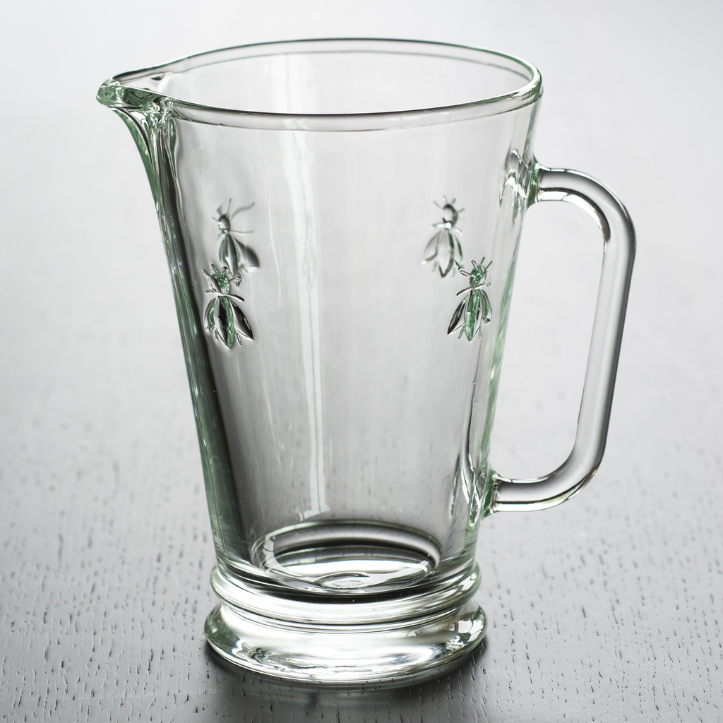 Diese große Glaskrug stammt von La Rochère, einer der ältesten Glashütten Frankreichs, die zugleich die älteste heute noch produzierende Manufaktur ist. Die Karaffe trägt das Wappentier der Familie Bonaparte: Die Biene.