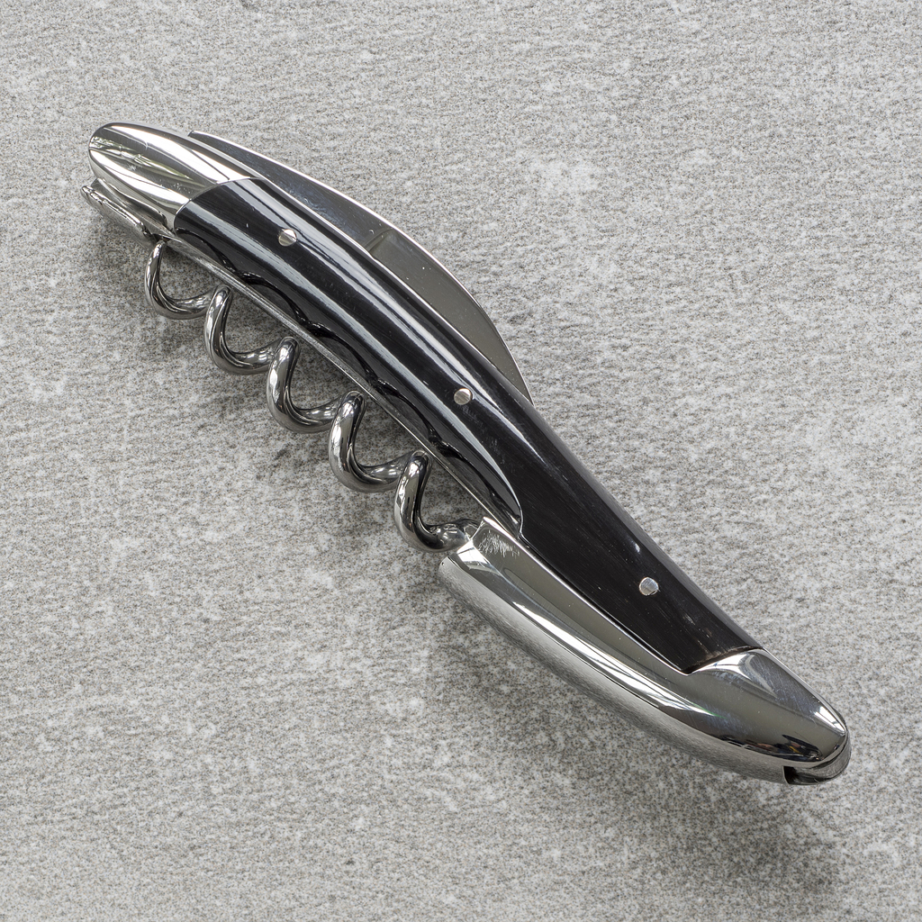 Diese Sommelier Korkenzieher stammen aus der Forge de Laguiole. Die 7 cm lange Spirale besteht aus Spezial stahl mit hoher Härte und Flexibilität. Sie verfügt über 5 Wendelungen für die extralangen Korken exklusiver Weine, eine besonders große Seele und eine Führungsrille. Die Stütze und das ausgewogene Hebel-/Lastverhältnis gestatten das leichte Öffnen der Flasche. Griffschale aus Horn oder aus feuchtigkeitsbeständigem Wacholderholz mit hoher Festigkeit und Witterungsbeständigkeit.