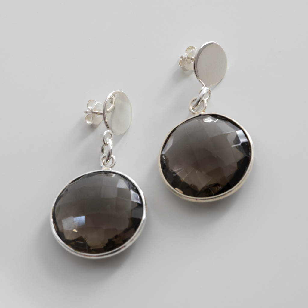 Große, klassische Ohrringe mit Stecker und beidseitig facettiertem Edelstein in einer handgemachten Fassung.