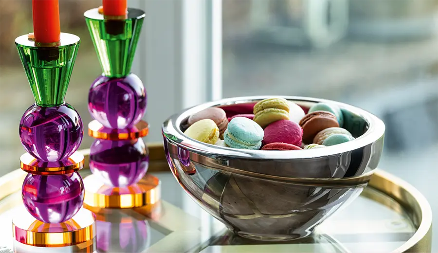 Echte Handwerkskunst: Auf einen Kristallglas-Rohling wird zunächst eine leuchtende Farbschicht überzogen. Anschließend arbeiten erfahrene Schleifer das moderne Design präzise von Hand heraus – eine kunstvolle Technik, die heute nur noch wenige Manufakturen beherrschen.