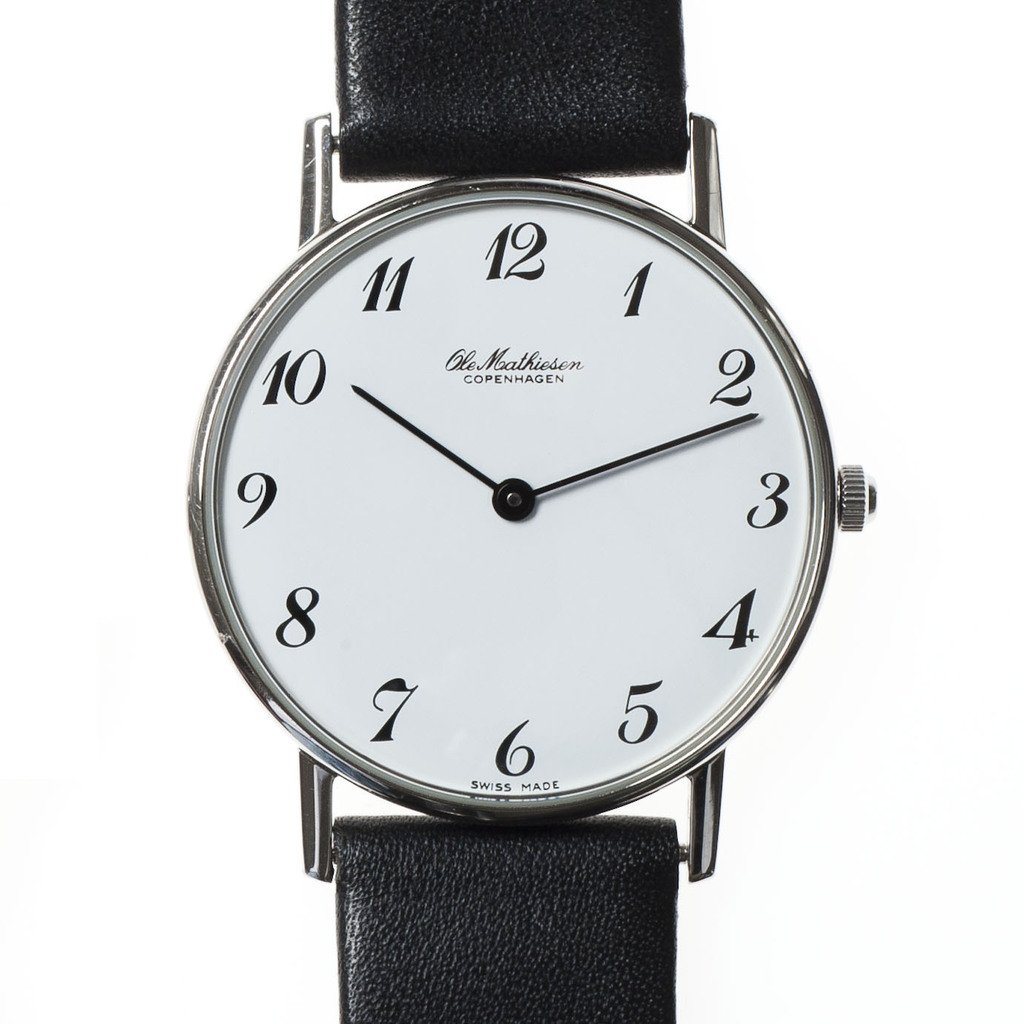 Als im Jahre 1980 Uhren von Ole Mathiesen in die ständige Sammlung des MoMA in New York aufgenommen wurden, erlangte die kleine Manufaktur aus Kopenhagen erstmals internationale Aufmerksamkeit. Etwa 20 Jahre vorher, im Jahre 1962, hatte der Uhrmacher Ole Mathiesen, der sein Handwerk u.a. bei dem schweizerischen Hersteller Jaeger-LeCoultre gelernt hat, eine Kollektion klassischer Uhren von heute zeitloser Eleganz entworfen. Charakteristisch ist das weiße, leicht gewölbte Zifferblatt in einem besonders flachen Gehäuse aus Edelstahl. Die Uhren bestechen jedoch nicht nur durch ihr Design, sondern auch durch ihre erstklassige Qualität, die der heute über 70 jährige Ole Mathiesen weiterhin persönlich überwacht.
