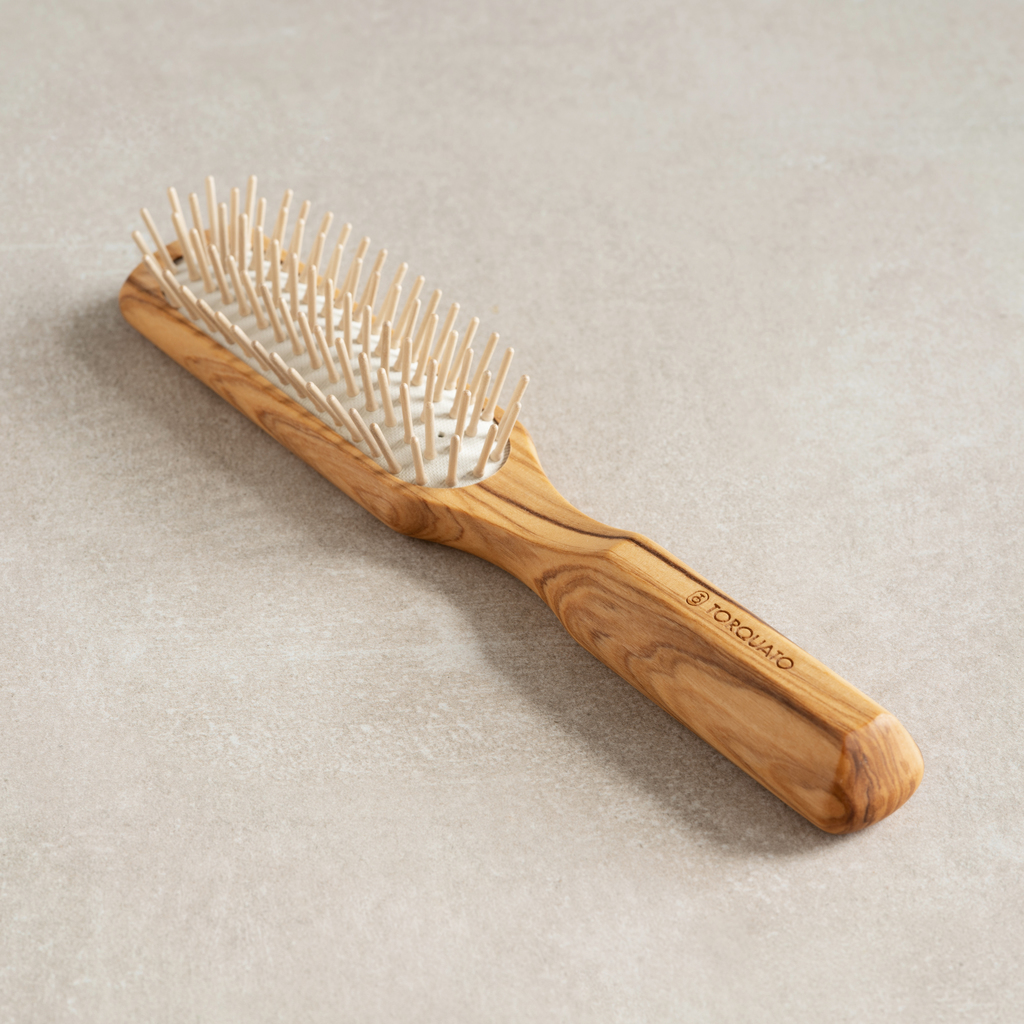 Olivenholzbürsten mit Luftpolsterbett und echten Holzstiften. Aus der bereits 1869 gegründeten Bürstenfabrik in Todtnau, dem Zentrum der Bürstenproduktion im Südschwarzwald. Alle Produktionsschritte von der Bearbeitung des Rohholzes bis zur fertigen Bürste finden unter einem Dach statt, um höchste Qualität und Funktionalität, langlebige Produkte und nicht zuletzt eine nachhaltige Rohstoffnutzung gewährleisten zu können.