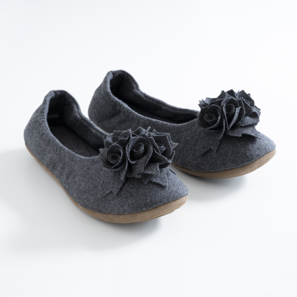 Diese überaus eleganten Hausschuhe stammen von der Schuhdesignerin Julia Gensel. Sie erlernte ihr Handwerk als Schuhmacherin an der Bayerischen Staatsoper und sammelte danach Erfahrung in internationalen Häusern mit großem Namen. Seit 2005 produziert sie mit den Pampuschen eine feine Hausschuhkollektion von bestechendem Charme. Obermaterial und Futter der Pampuschen sind für eine bestmögliche Kombination von Wärme, weicher Haptik und Stabilität aus 60 % Wolle, 25 % Viskose und 15 % Polyester gefertigt. Wildledersohle mit Gummieinsätzen. Lieferbar in den Farben Anthrazit und Dunkelblau.