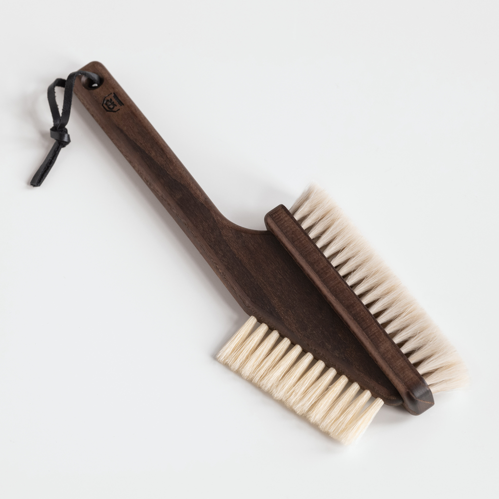 Altbewährtes für moderne Geräte: Die mit Ziegenhaar bestückte Seite dieser Bürste eignet sich perfekt zum Entstauben empfindlicher Monitoroberflächen. Ziegenhaar ist wunderbar weich und zieht mit seiner antistatischen Eigenschaft Staub magisch an. Mit der schmalen, kräftigen Borstenreihe auf der anderen Seite lässt sich Schmutz aus den schwer zugänglichen Zwischenräumen von PC- und Telefontastatur oder der Fernbedienung beseitigen. Geöltes Thermoholz, Ziegenhaar und helle Naturborste.