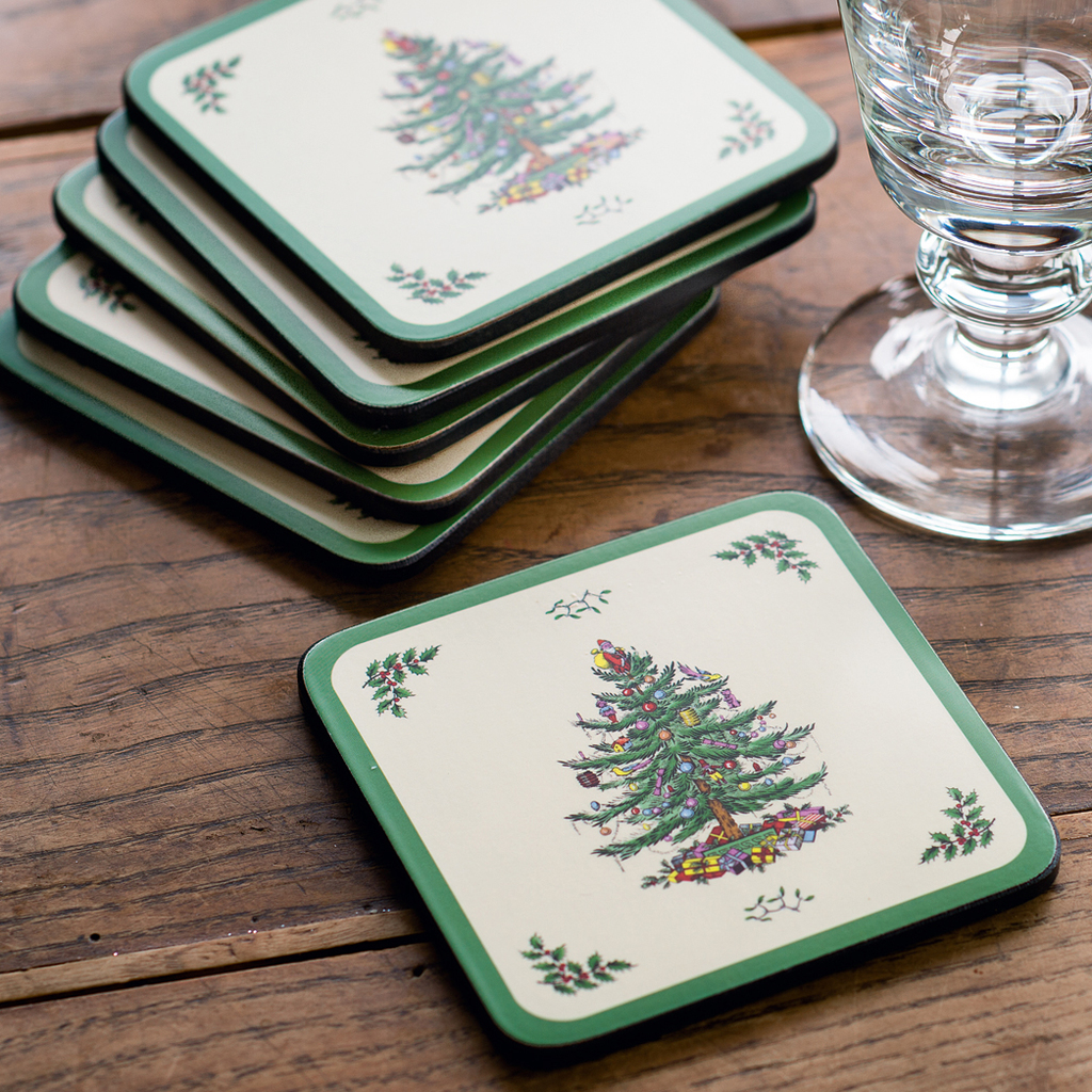 Weihnachtliche Glasuntersetzer von Pimpernel. Sie bestehen aus einer 5 mm starken Holzplatte mit aufkaschiertem Kunstdruck, einem schützenden Lacküberzug und einer Korkschicht auf der Unterseite. Hitzebeständig bis 100 °C. Format 10,5 x 10,5 cm. 6 Stück.