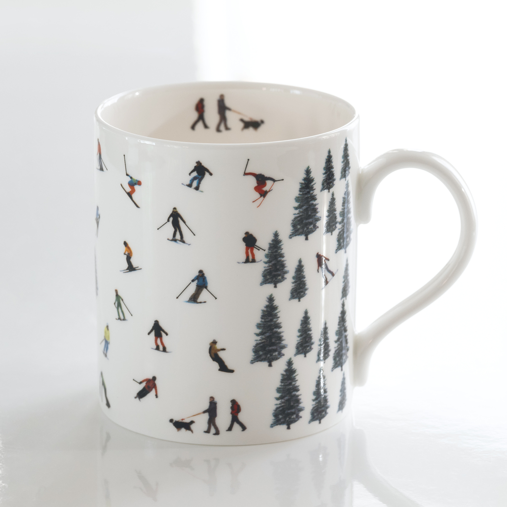 Aus weißem, wunderbar transluzentem Fine Bone China gefertigter Becher mit farbenfrohen Skifahrermotiven. Alle Illustrationen stammen von der Londoner Künstlerin und Fotografin Natasha Durlacher und feiern den Schnee und die Schönheit des alpinen Lebens. Als Geschenk für Menschen, die die Berge lieben, als winterliche Geschirrergänzung für zuhause oder die Berghütte. Hergestellt in einer britischen Porzellanmanufaktur.