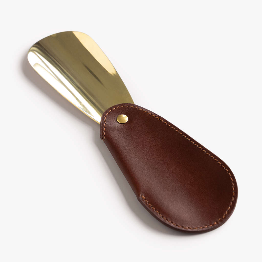 Klein und fein, ausgesprochen nützlich: Dieser Schuhlöffel in einem Etui aus feinem Rindsleder findet selbst in der kleinsten Reise-, Sport- oder Handtasche Platz. Kommt er zum Einsatz, wird er auf die doppelte Länge aufgefächert, sodass die feste Lederhülle als Griff dient. Über das Blatt aus poliertem Messing gleitet der Fuß mühelos in den Schuh. Ein schönes Reiseaccessoire, auch zum Verschenken.