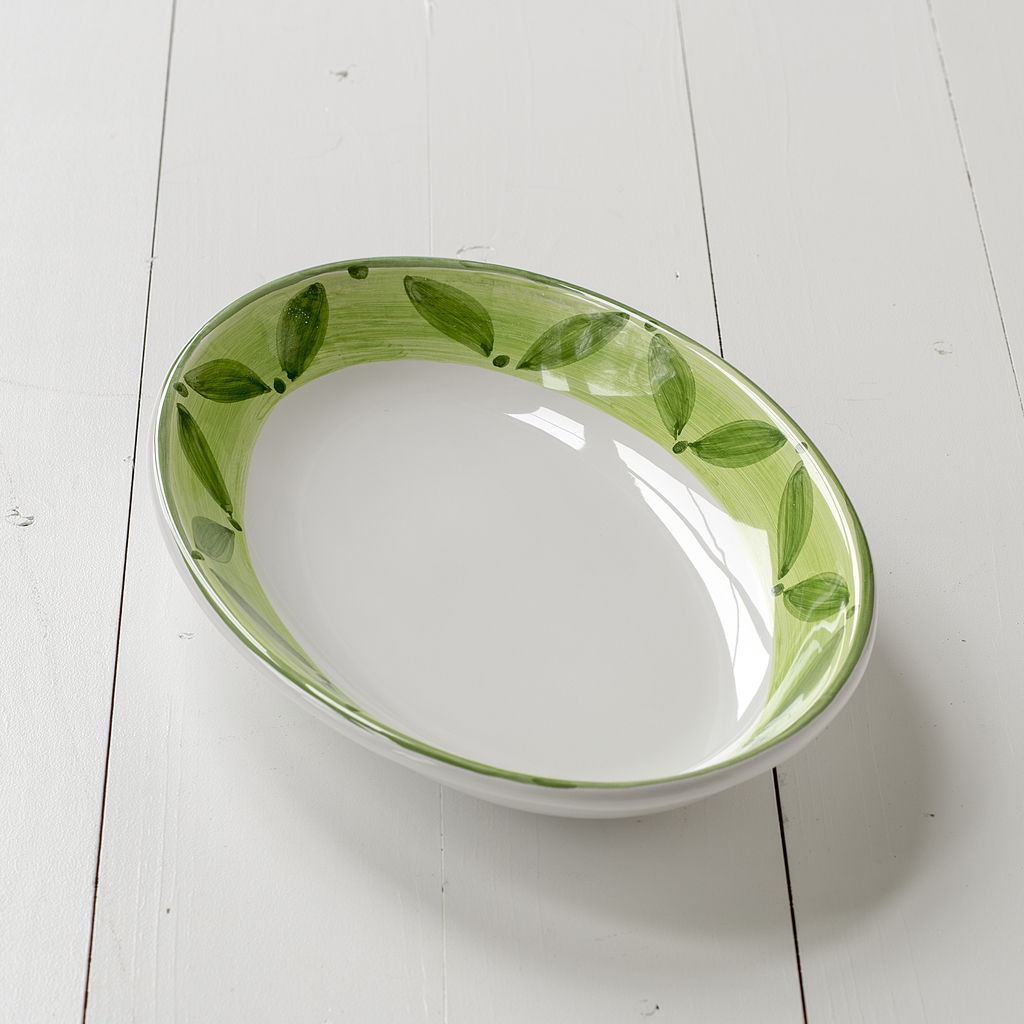 Nun folgt der Teil in der Herstellung, der dem Geschirr sein sizilianisches Aussehen verleiht: Alle Teile werden zunächst in ein Glasurbad getaucht. Nach dem Trocknen erfolgt die individuelle Bemalung, die bei jedem Teil vollständig von Hand vorgenommen wird. Dabei ähneln sich die Stücke so, daß nur das geübte Auge die winzigen Unterschiede wahrnehmen kann. Jedes Stück ist dennoch ein Unikat – von Hand nachbearbeitet, getaucht und bemalt. Es folgen der zweite Brand und die strenge Endkontrolle, bei der Teile mit im Brand entstandenen Fehlern als zweite Wahl aussortiert werden oder zum Nacharbeiten in die Produktion zurückgehen.