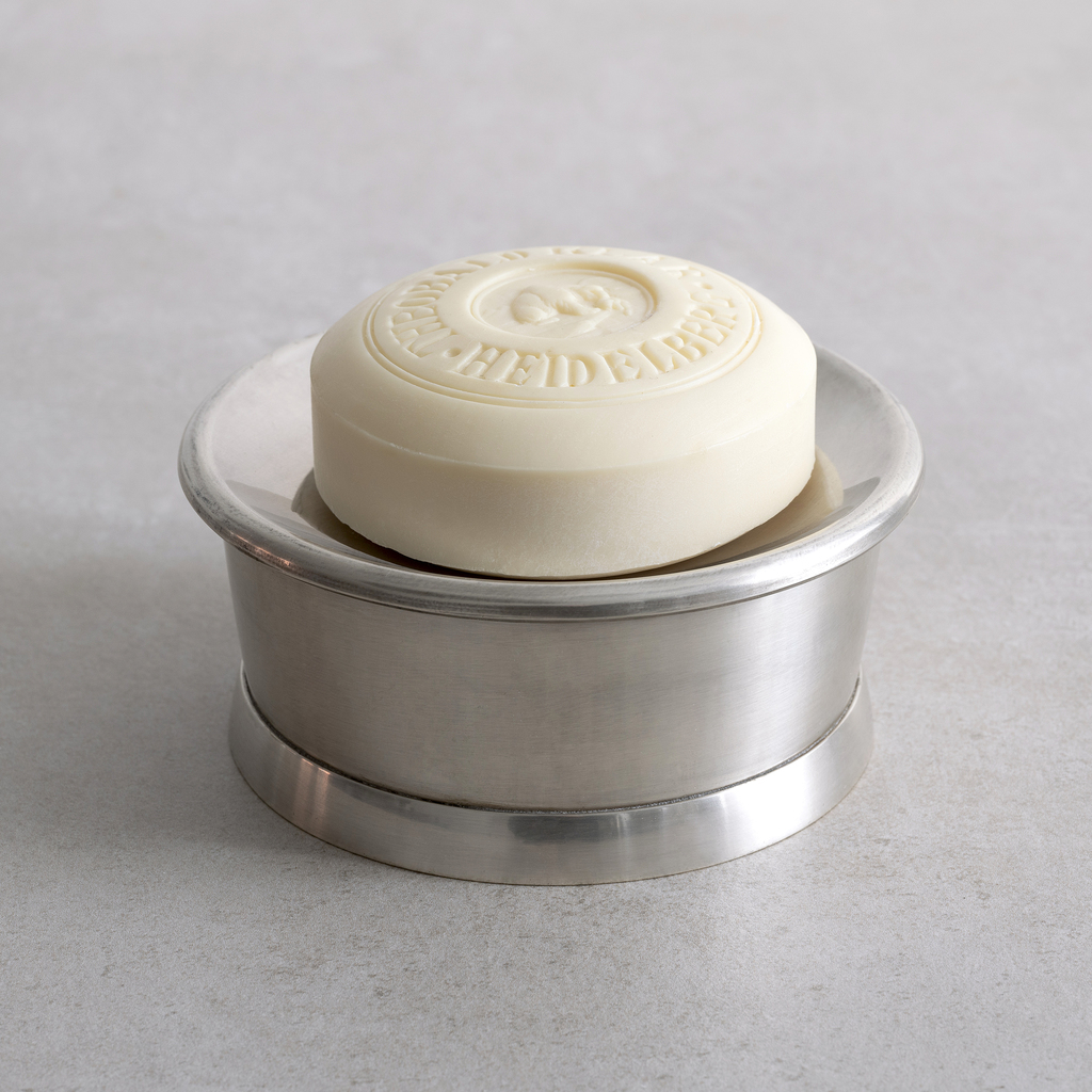 Seifenschale mit speziell angepasstem Glaseinsatz, der das Seifenwasser auffängt.