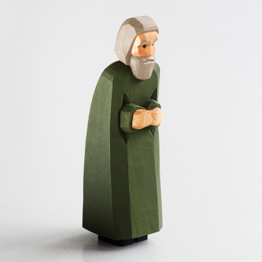 Stehender, bärtiger Hirte – von Hand geschnitzt.