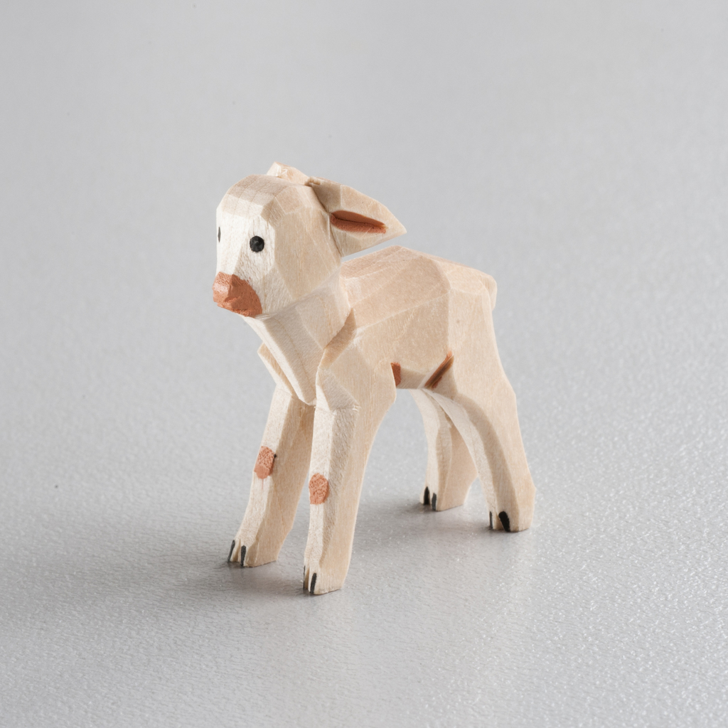Helles, stehendes Lamm, nicht nur ein kleines Schaf, sondern wirklich wie ein Lamm aussehend. Von Hand geschnitzt.