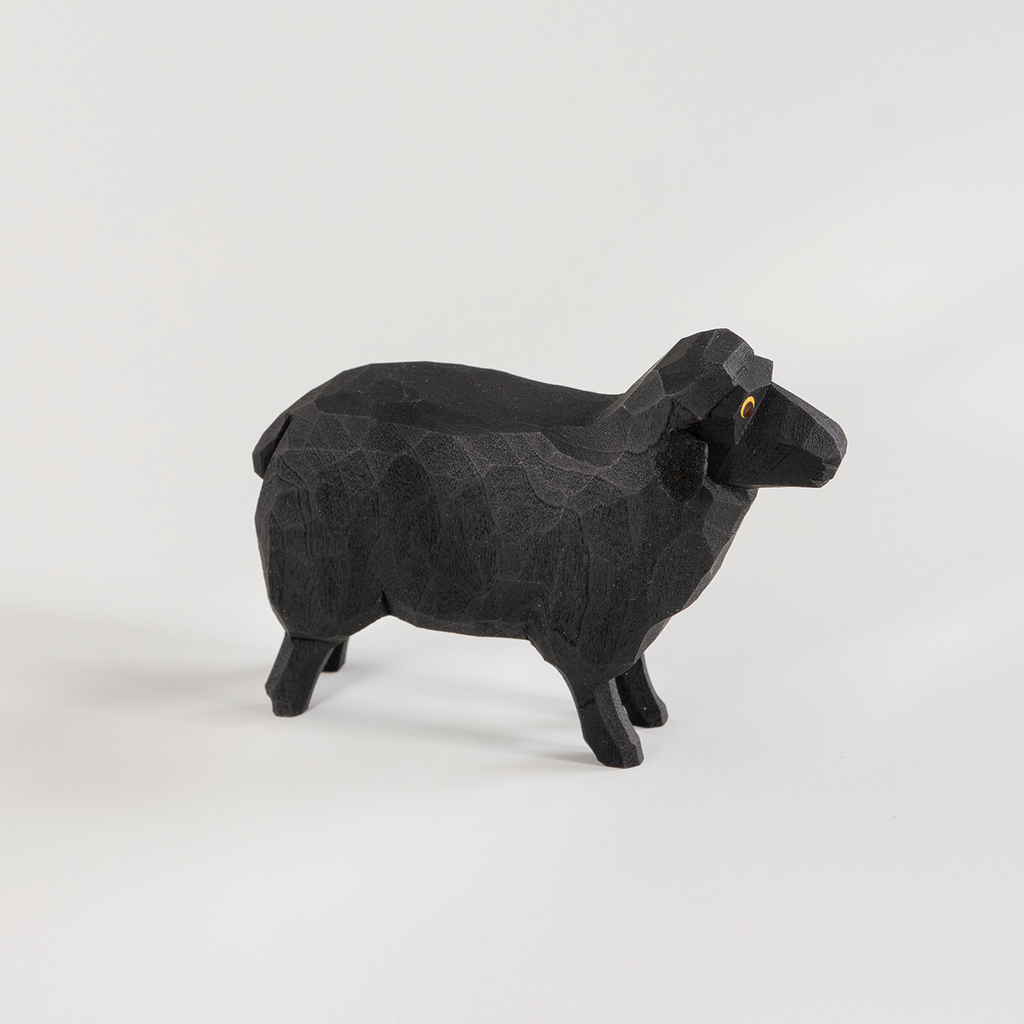 Schwarzes Schaf – von Hand geschnitzt aus Lindenholz.