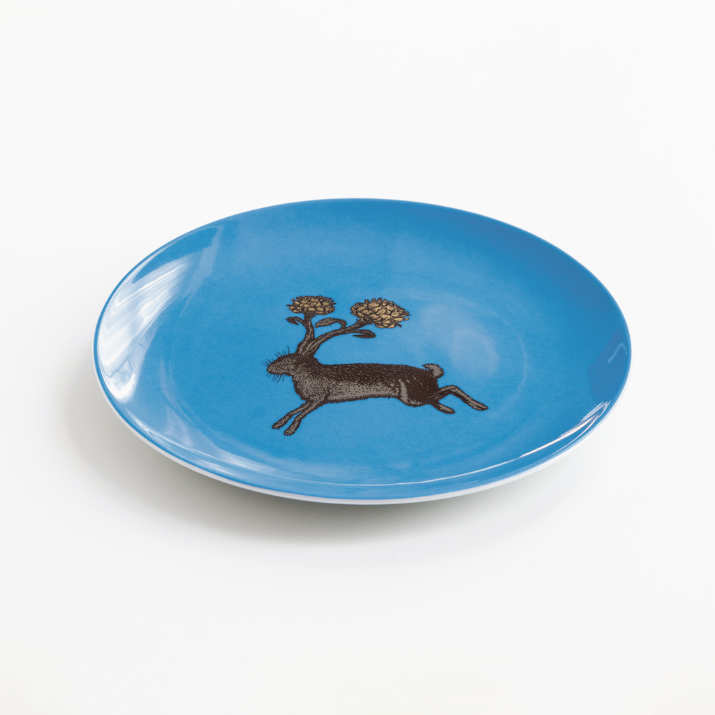 Somerset Frühstücksteller Feldhase auf blauem Grund