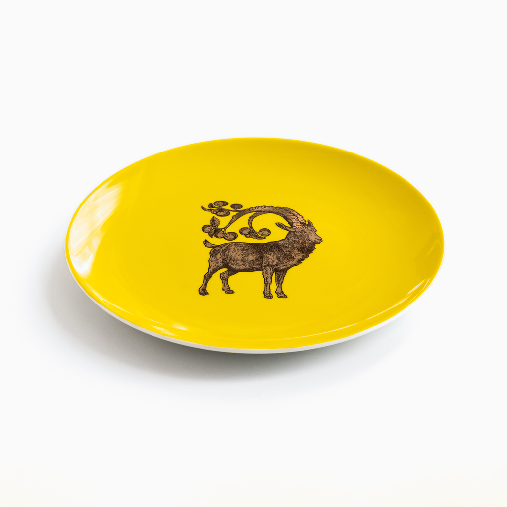 Somerset Frühstücksteller Steinbock auf hellgelbem Grund