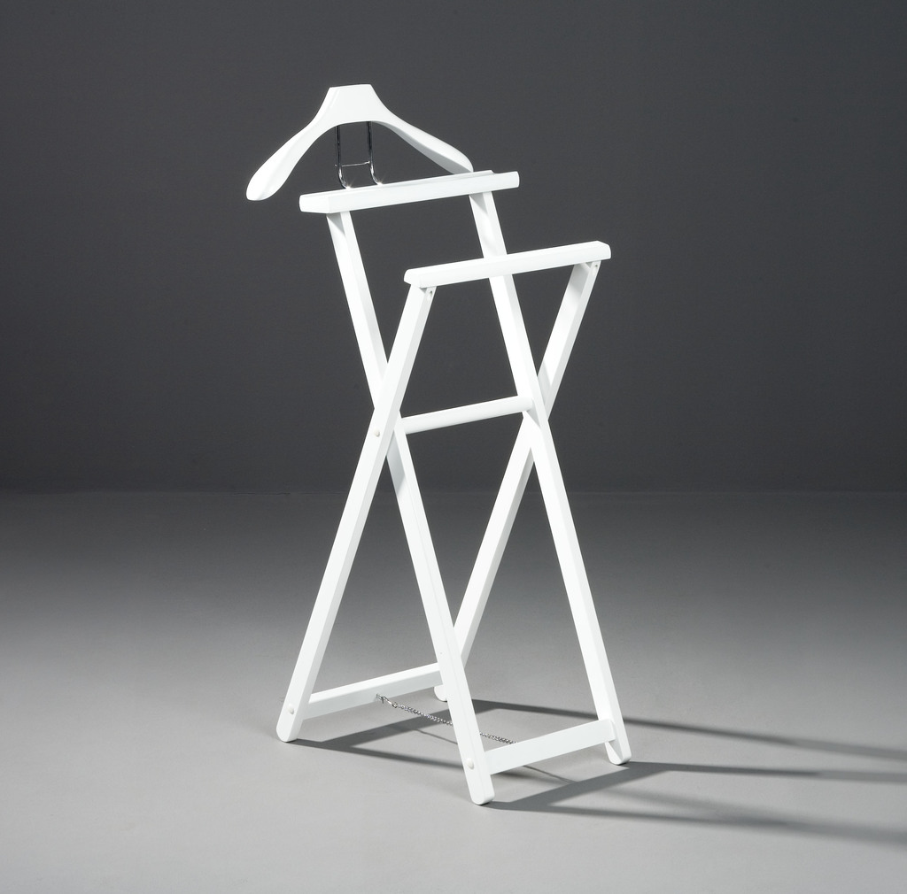 Diese schlichten stummen Diener versehen ihren Dienst aufgrund ihrer funktionalen Formgebung sehr unauffällig. Die Hose und die Krawatte werden über den vorderen Teil gehängt. Auf dem hinteren Teil ist Platz, um die Taschen auszuleeren. Hemd und Jacke finden auf dem Formkleiderbügel Platz. Lieferung als Bausatz. Von Union, dem Premiumhersteller von hochwertigen Kleiderbügeln.