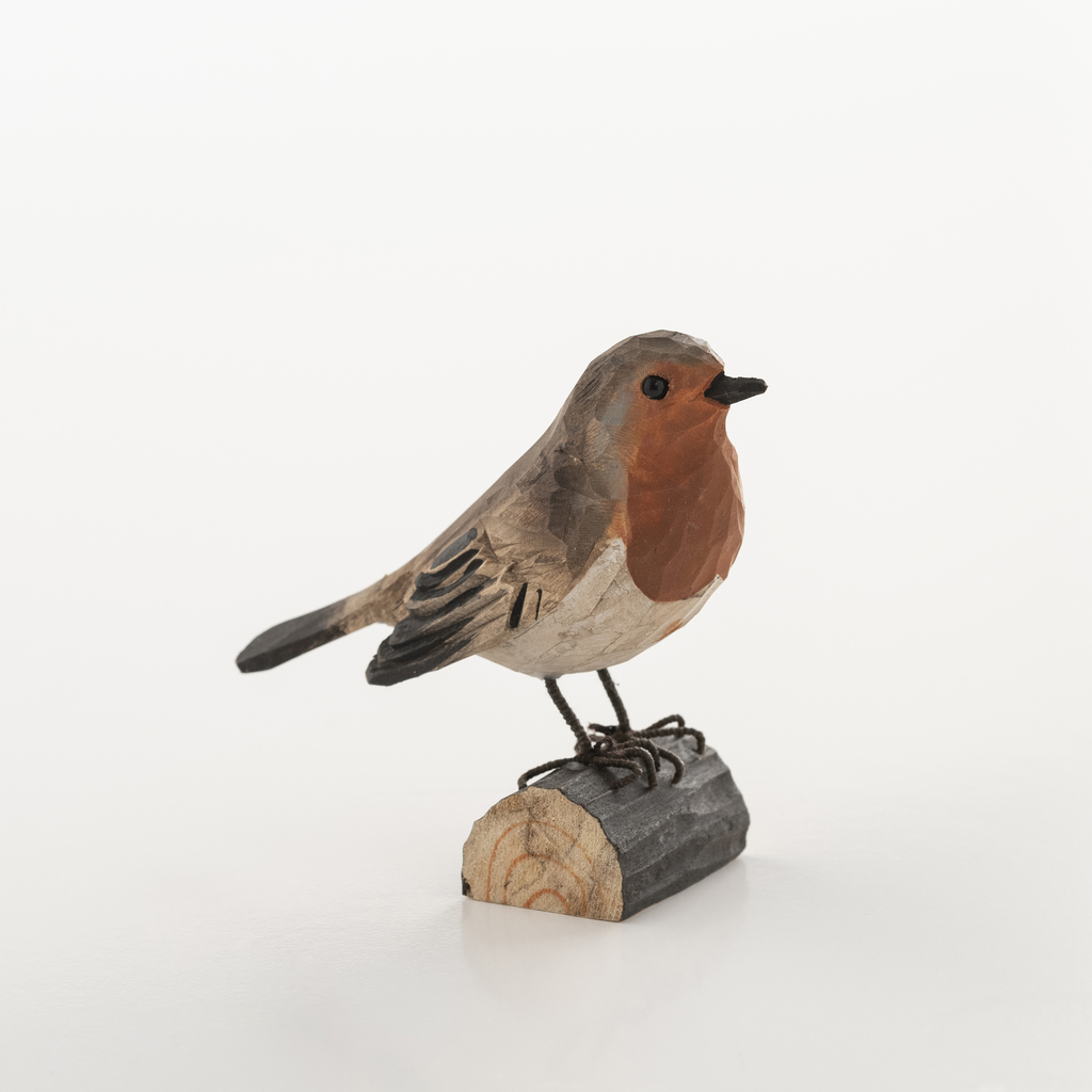 Handgeschnitzter Dekovogel Rotkehlchen