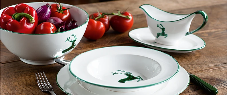 Grüner Hirsch Teller Sauciere