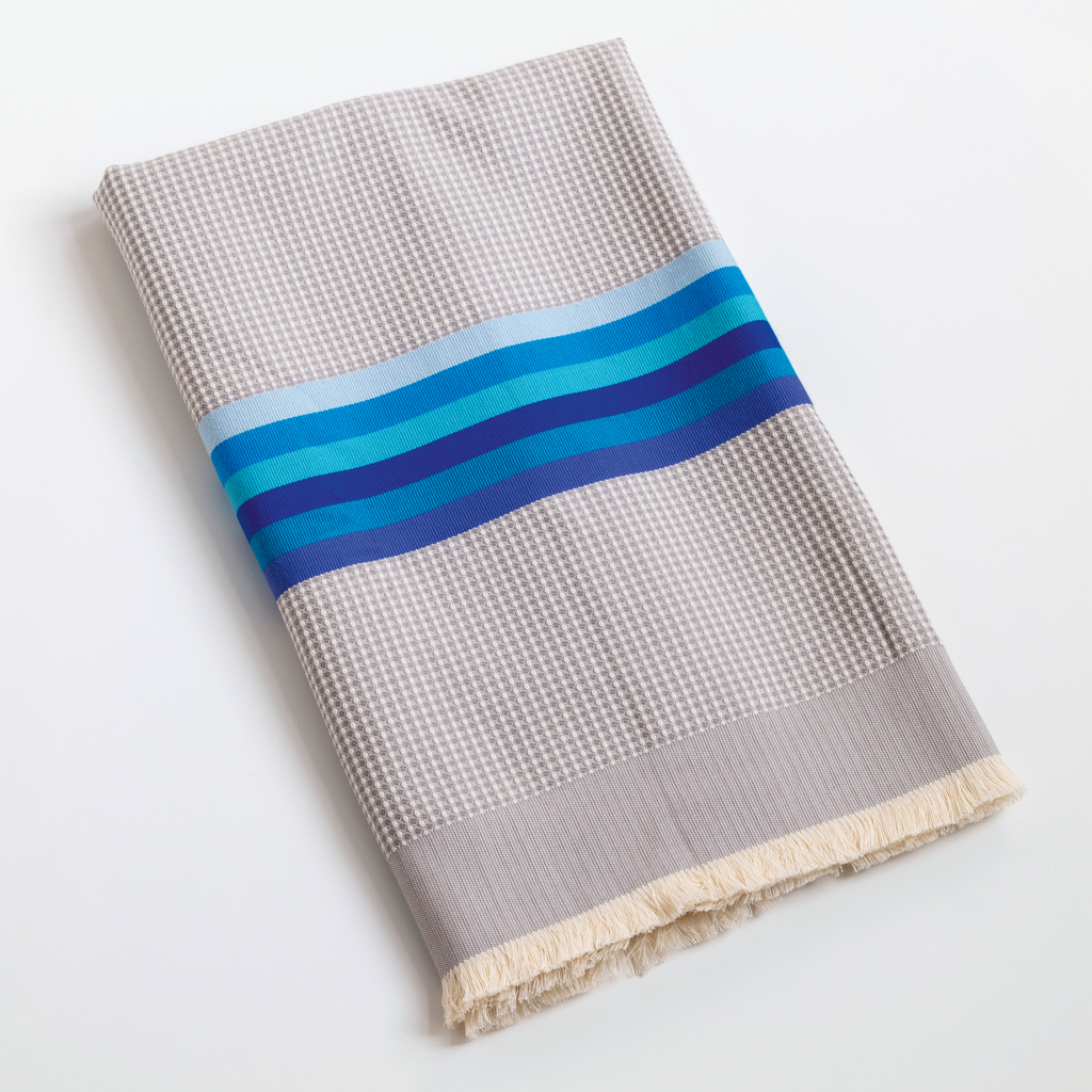 Herrlich sommerlich-farbintensive Bade- und Duschtücher aus dickem, saugfähigem Waffelpiqué von bestechender, wunderbar weicher Qualität. Sie stammen aus dem französischen Baskenland, wo leuchtende Farben in Kombination mit herausragender Belastbarkeit zum regionalen textilen Erbe gehören. Hergestellt werden die Tücher bei Tissage de Luz in Espelette südlich von Biarritz: Hier werden bereits seit 1908 und in fünfter Generation anspruchsvolle Haushaltstextilien und Produkte für Strand und Garten produziert, die vom Entwurf der Stücke über das Weben der Stoffe bis zum Konfektionieren vollständig im eigenen Haus entstehen. Die Waffelpiqué-Struktur nennt man hier trotz ihrer viereckigen Form Nid d’Abeille: Bienenwaben. Mit kurzen, aus den weißen Kettfäden gebildeten Fransen an den Schmalseiten.