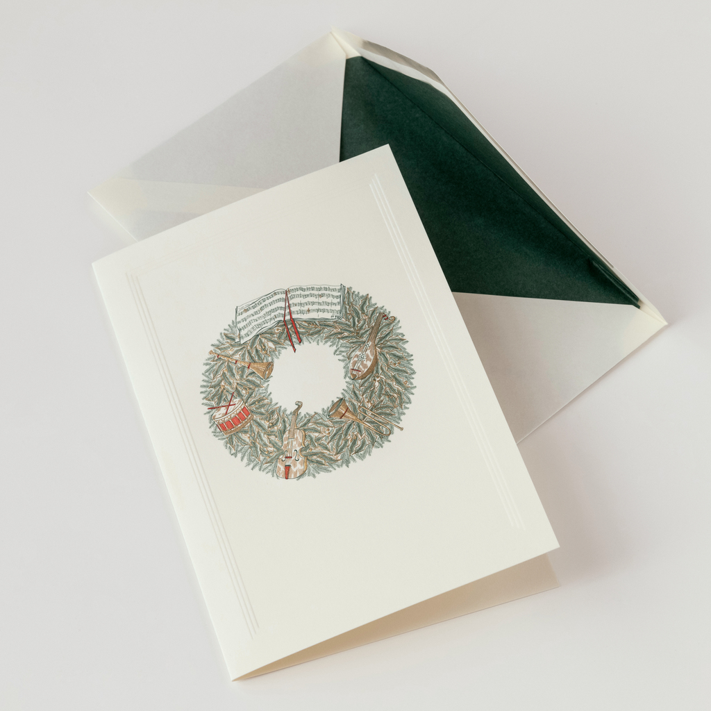 Weihnachtskarte Stahlstich von Crown Mill Kranz