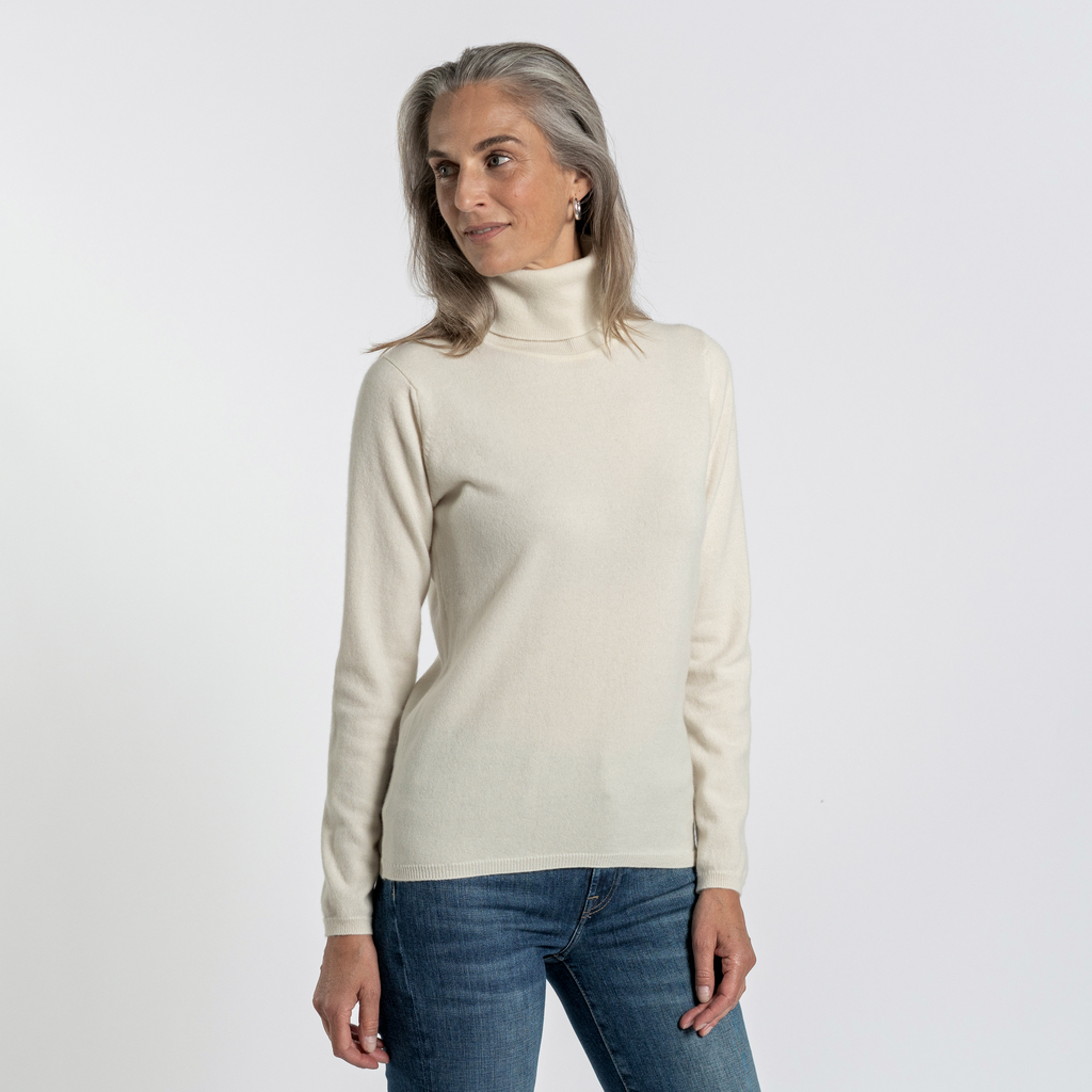 Ein Pullover aus unübertroffen weichem und leichtem Kaschmir wärmt auf angenehme Weise sowohl im Winter als auch an kühlen Sommerabenden. Als vielseitiger Klassiker mit Rollkragen vervollständigt er jede Basisgarderobe und passt noch in die kleinste Reisetasche. Wir lassen unsere Pullover bei William Lockie in Schottland anfertigen, denn die Strickwaren aus der 1874 gegründeten Traditionsstrickerei haben uns in puncto Qualität, Formbeständigkeit und Langlebigkeit überzeugt. Kaschmirpullover von William Lockie neigen zum Beispiel kaum zum Pilling, weil für die Garnherstellung nur die längsten Fasern aus dem Unterfell der Kaschmirziege verwendet werden. Das einfädig (1-Ply) versponnene Garn wird zu sehr leichten Pullovern verstrickt, die wenig auftragen und auch gut unter einen Blazer passen. Schmale Rippenbündchen.