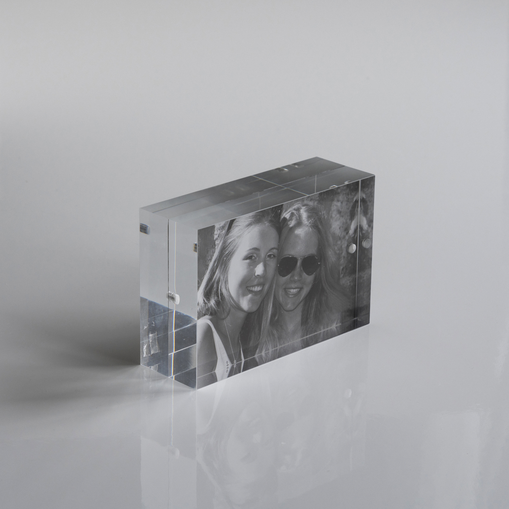 Diese massiven Acrylblöcke verschaffen jedem Foto einen starken Auftritt: Es wird zwischen zwei 2,5 cm dicken, transparenten Acrylglasplatten gehalten, die durch Magnete fest aneinanderliegen. Die Bilder wirken dadurch wie in einen Glasbaustein eingegossen – trotzdem kann man die eingelegten Fotos schnell und einfach wechseln. Von XLBoom, einem innovativen Unternehmen aus der Nähe von Antwerpen.